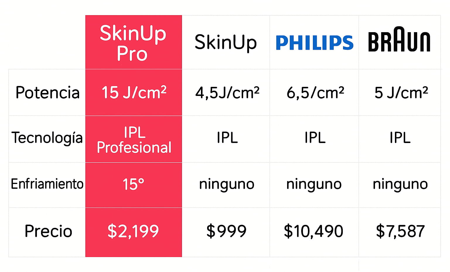 Además, SkinUp cuenta con certificaciones de la FDA, por lo que es segura para su uso doméstico.